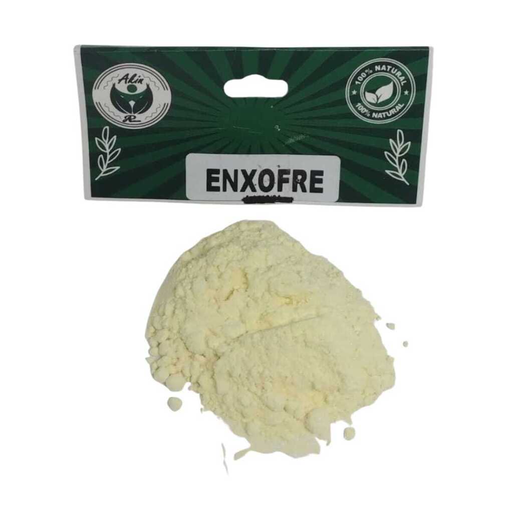 Enxofre em pó, utilizado em defumações, limpeza energética e emplastros indicados por guias ou entidades espirituais.