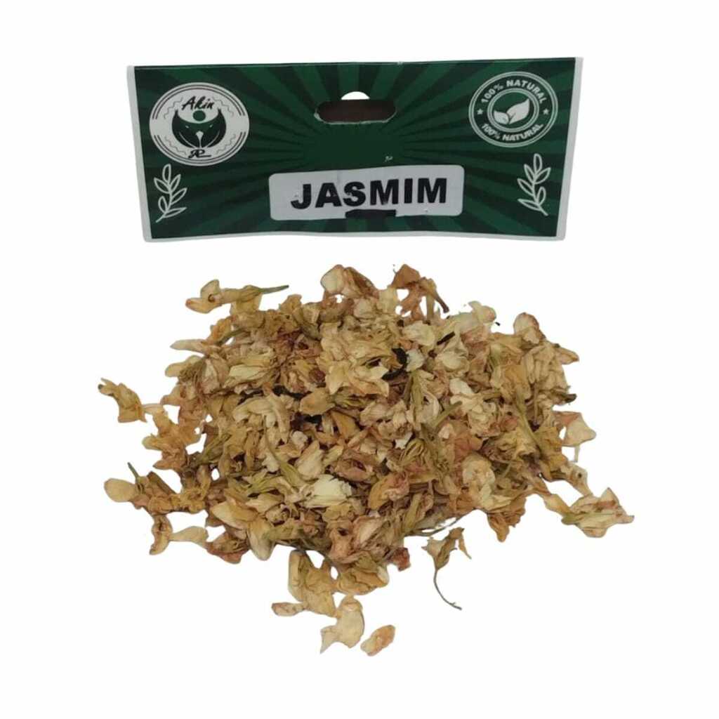 Jasmim desidratado para banhos e rituais, utilizado para promover equilíbrio emocional, serenidade e bem-estar espiritual em momentos de estresse e ansiedade.